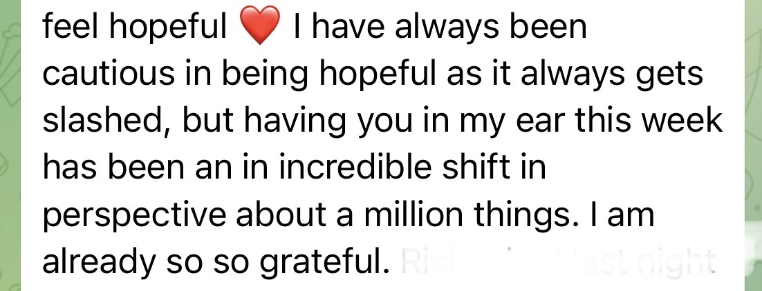 I intentionally limit the number of 1:1 clients I take each month so I can offer steady, high-touch support.
